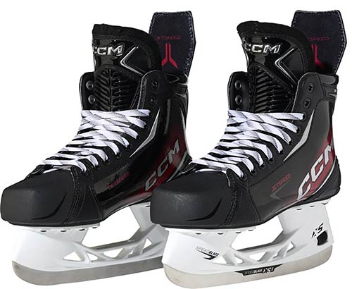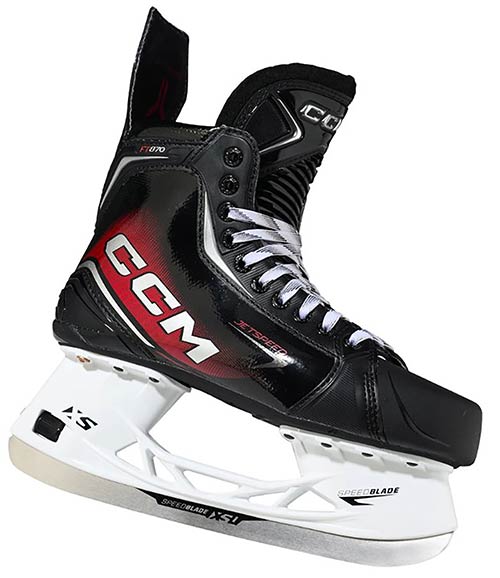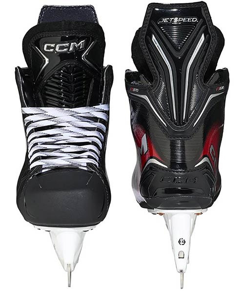 he CCM Jetspeed FT870 Senior skate combines cutting-edge technology with a high-performance design, giving ambitious players maximum performance on the ice. The one-piece boot construction transfers every stride into speed and power, while premium materials deliver comfort and durability. Ideal for players who demand precise energy transfer, stability, and a custom fit.