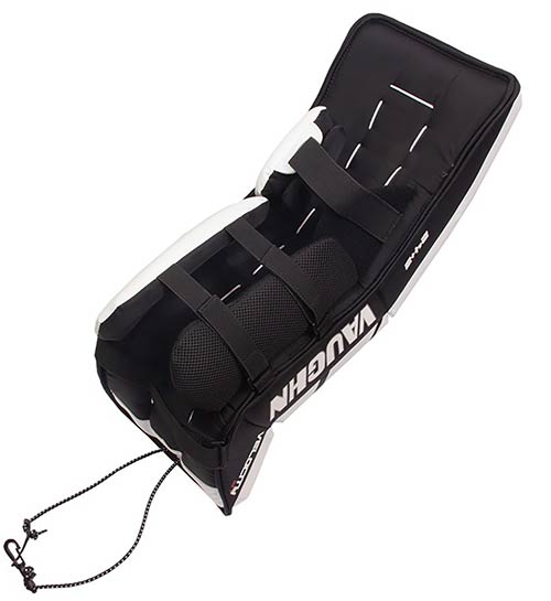 The Vaughn Velocity VX1 Junior goalie pad in black delivers excellent rebound control, smooth sliding performance, and secure fit - perfect for young goaltenders with a modern butterfly style. Its smart design supports active play without limiting mobility.